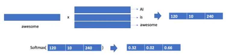 - 쿼리 벡터 Q와 모든 키 벡터 K 간 내적 계산 -> Q와 모든 K 간의 유사도인 S를 얻을 수 있음
