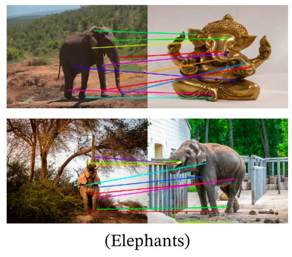 스타일이 완전히 달라도 유사한 이미지 featrue끼리 잘 매칭하고, PCA로 분석했을 때도 앞에서 봤던 것처럼 서로 스타일이 다른 객체끼리도 유사한 부분(머리, 꼬리)는 같은 색으로 표시된다.