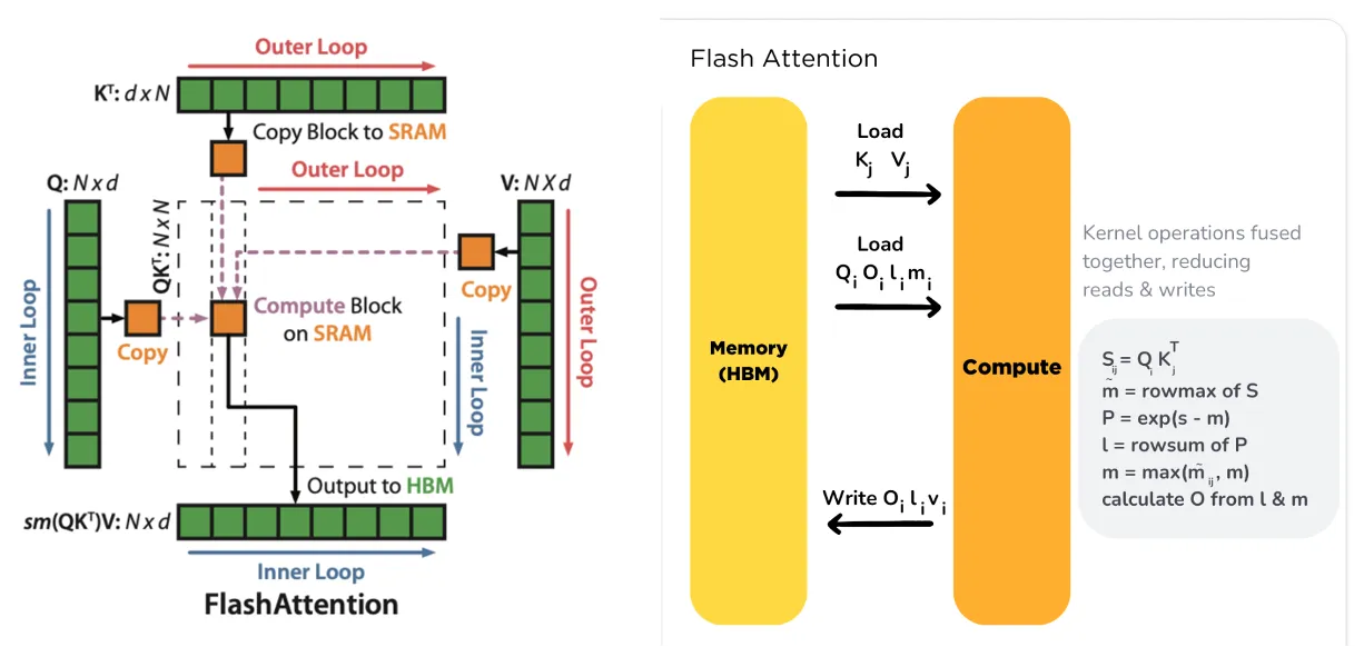 - FlashAttention: GPU에서 연산 시 HBM access를 줄여 속도를 높인 방법